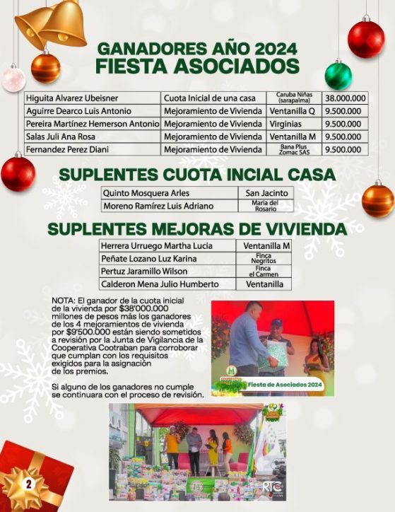 Estos fueron los ganadores el de la cuota inicial de una casa y los ganadores de los mejoramientos de vivienda