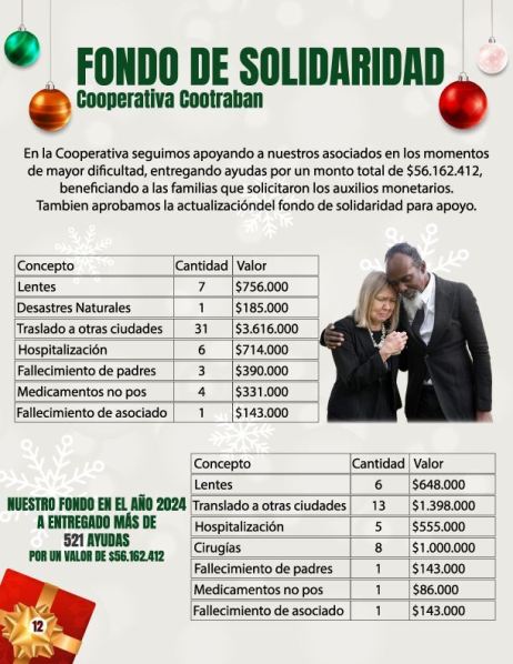 La Cooperativa Cootraban realiza ayudas económicas a sus asociados cuando tiene los siguientes eventos: